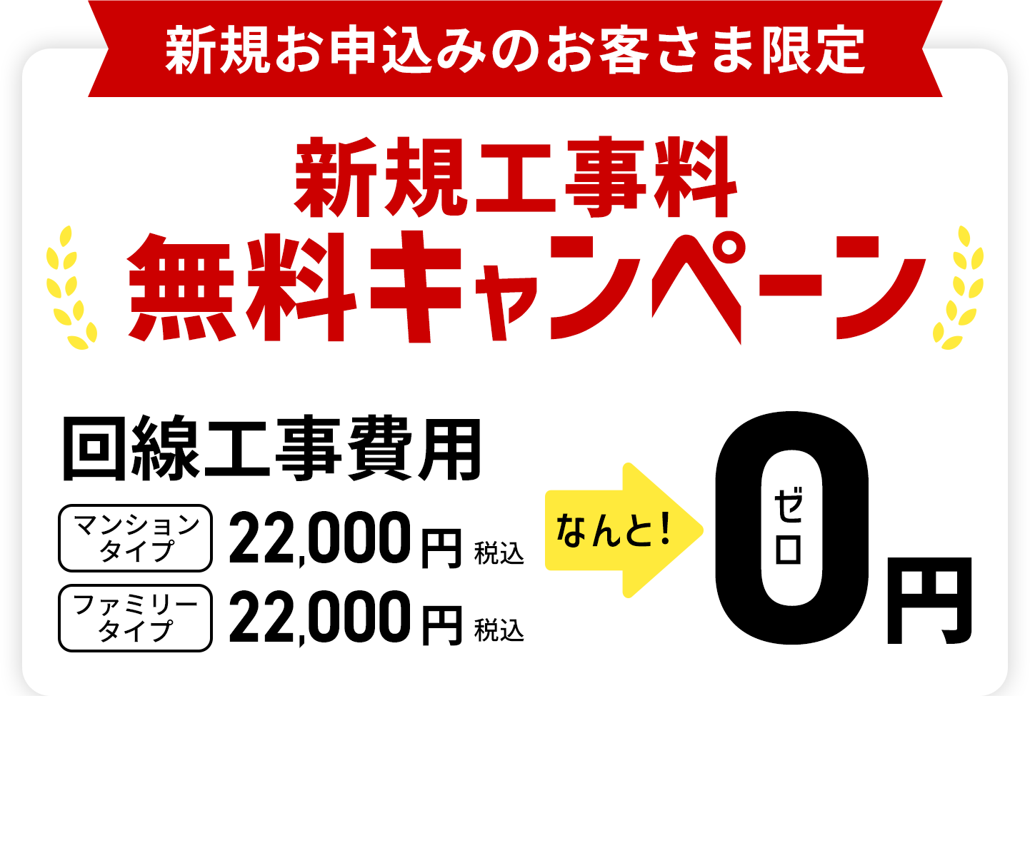 現在、お得な工事費無料キャンペーンを行っています。 -